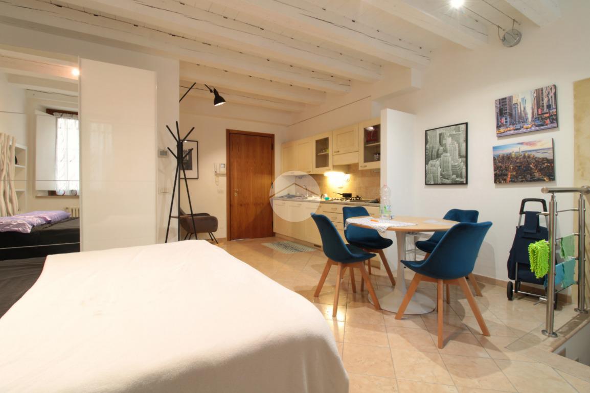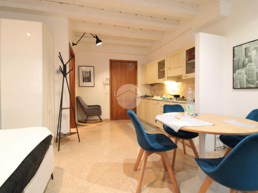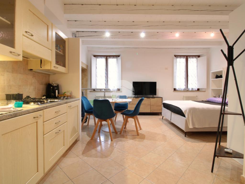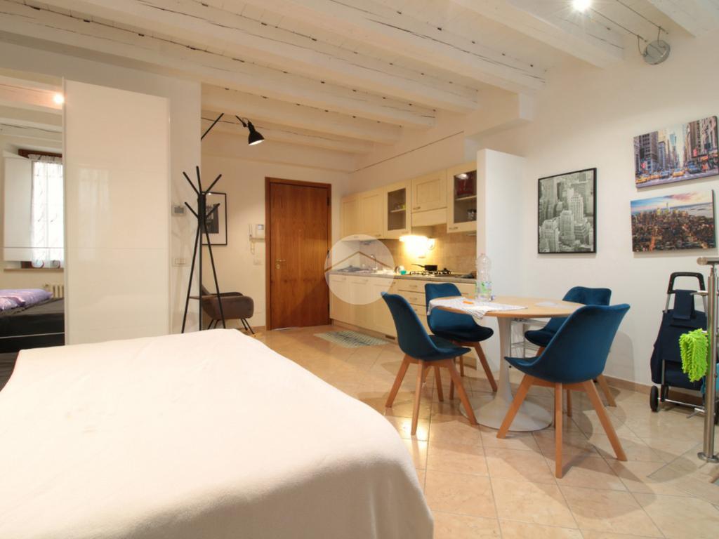 All'interno di un contesto storico completamente ristrutturato e ben abitato, grazioso monolocale composto da ingresso, zona cucina, zona letto, bagno completo di box doccia e comodo ripostiglio con lavatrice. Termoautonomo.