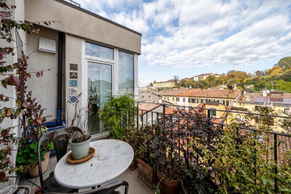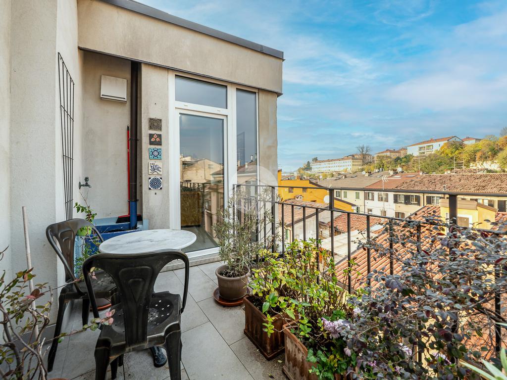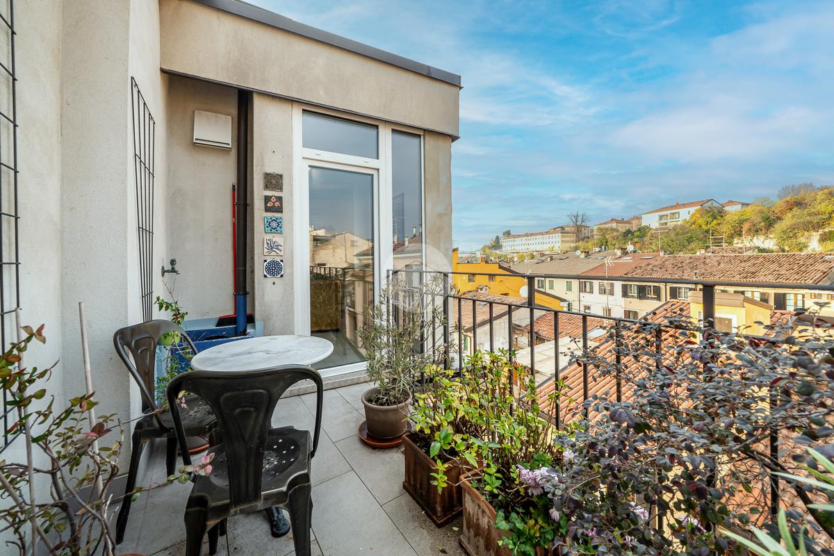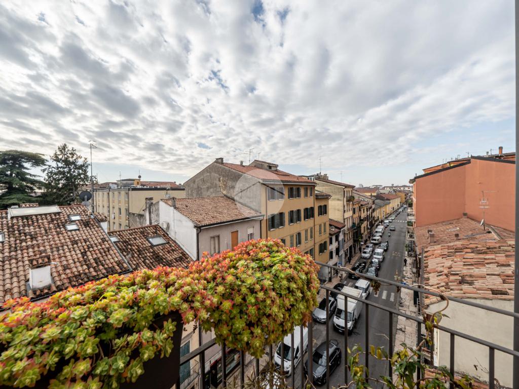 La zona notte si compone di una camera matrimoniale con balcone, che offre una vista suggestiva sui tetti di Veronetta, una seconda stanza versatile che può essere utilizzata come cameretta, studio o cabina armadio, e un ampio bagno finestrato con antibagno, che conferisce comfort e funzionalità.