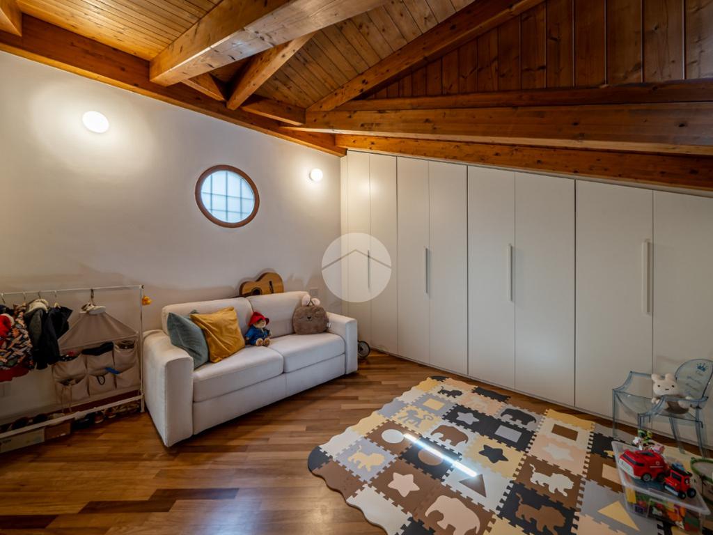 Non mancano praticità e comfort: l’appartamento è dotato di aria condizionata e caldaia autonoma a gas, per garantire il massimo del benessere in ogni stagione. Le rifiniture sono di alto livello, con pavimenti in legno che riscaldano l’ambiente e travi a vista che conferiscono un tocco di charme. I serramenti e i Velux sono nuovi, in legno con taglio termico.