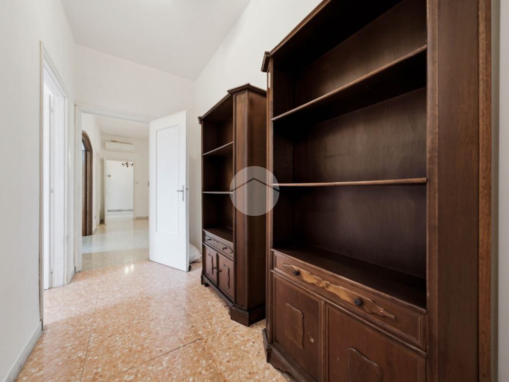 L’immobile si apre su un ingresso che conduce al soggiorno luminoso, con accesso a un ampio balcone di circa 12 metri, perfetto per momenti di relax all’aperto. Il cucinotto è abitabile e separato dalla zona giorno. La zona notte è composta da tre camere da letto di generose dimensioni, di cui la principale dotata di balcone privato, oltre a un bagno finestrato e a un ampio corridoio armadiabile che offre ulteriore spazio contenitivo.