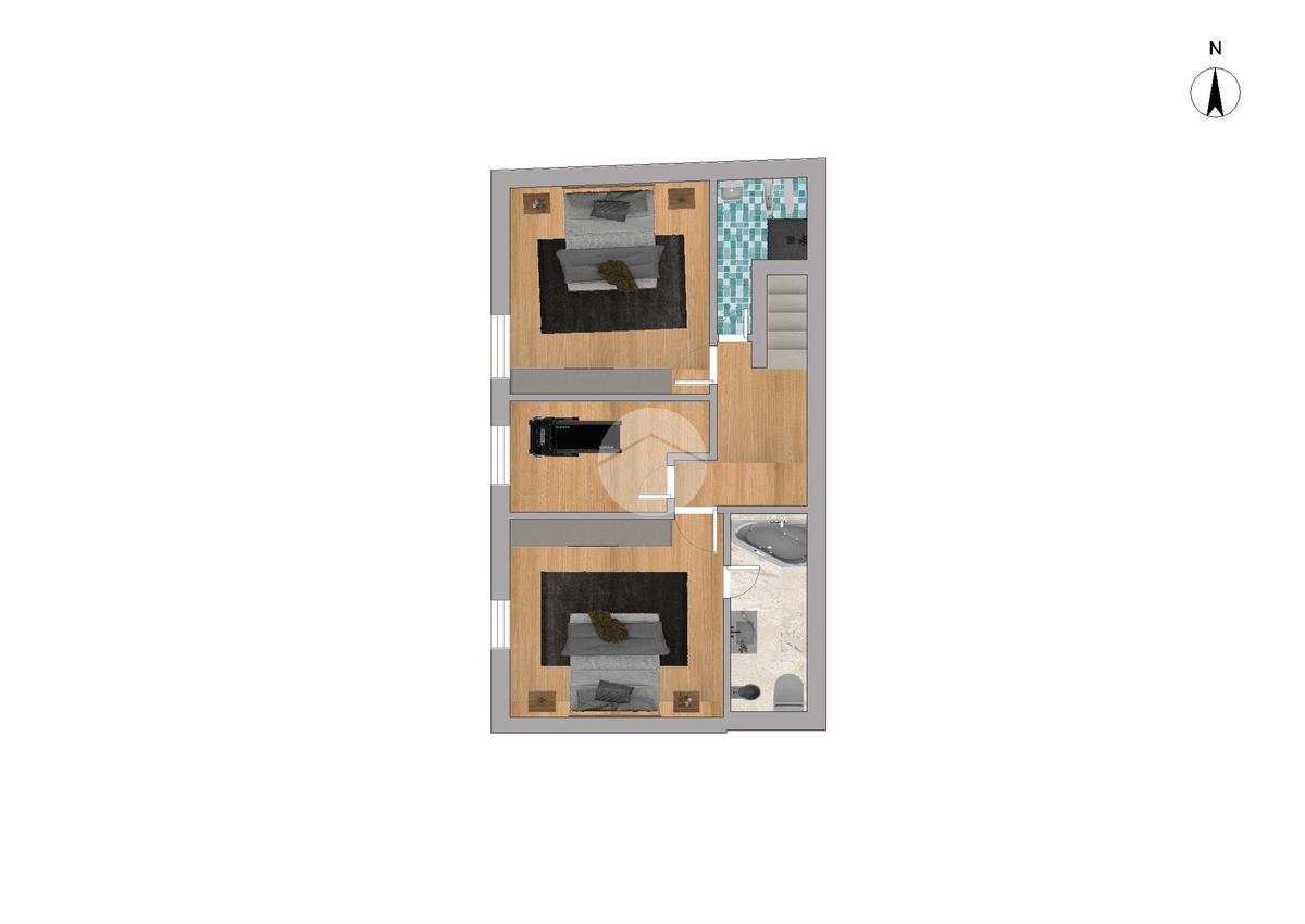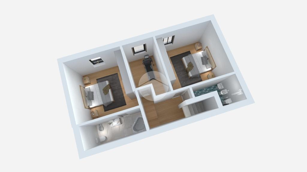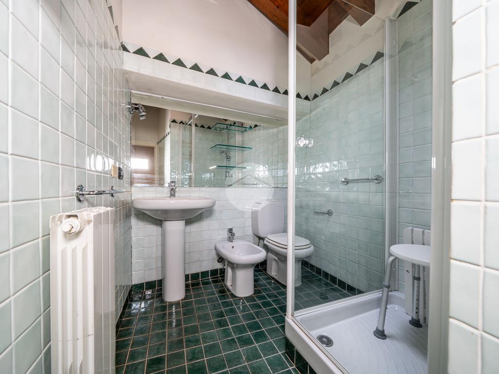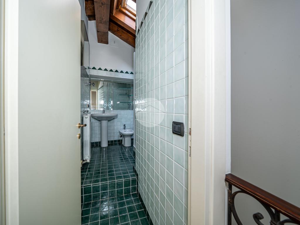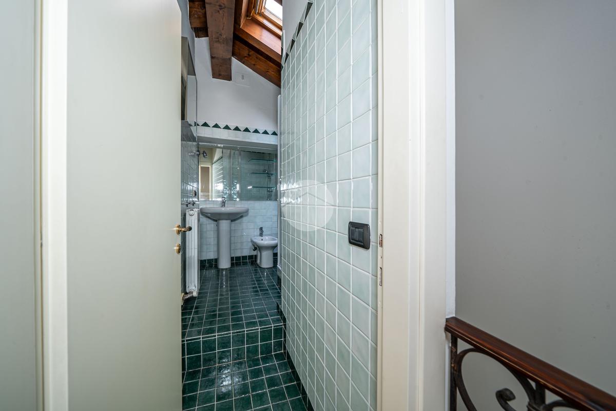Al piano superiore si sviluppa la zona notte composta da tre camere da letto (due matrimoniali e una singola) e due bagni finestrati con velux, uno con box doccia e uno con vasca idromassaggio.