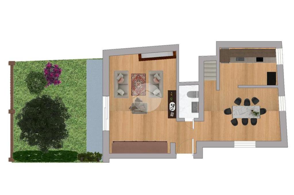 Al piano terra troviamo un ampio soggiorno con camino e accesso diretto al giardino privato di circa 60 mq, cucina con sala da pranzo e bagno di servizio.